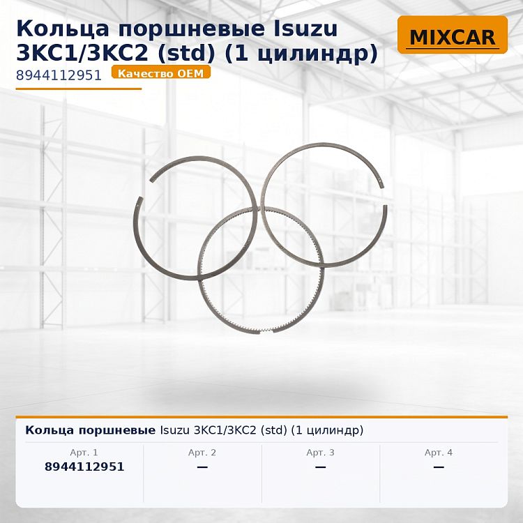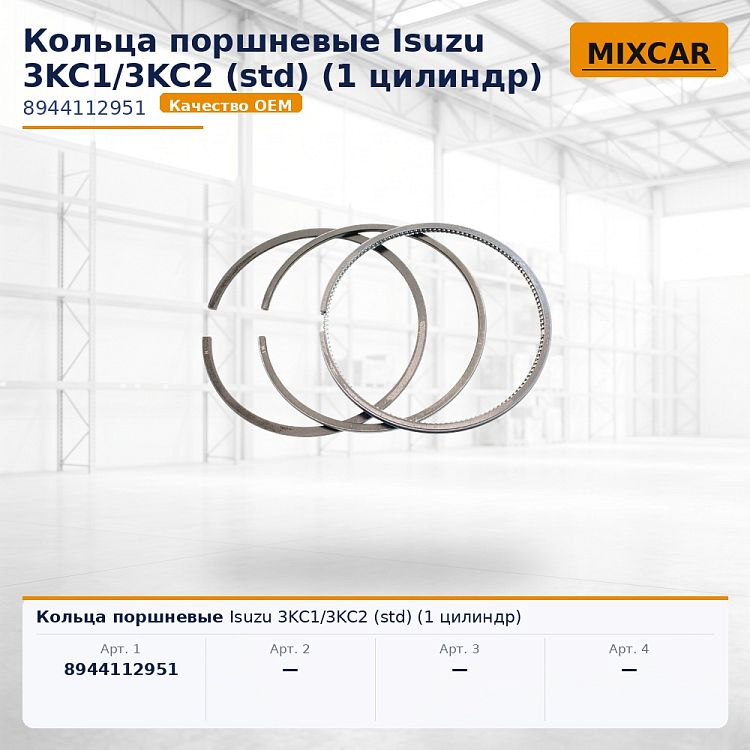Кольца поршневые Isuzu 3KC1/3KC2 (std) (1 цилиндр).