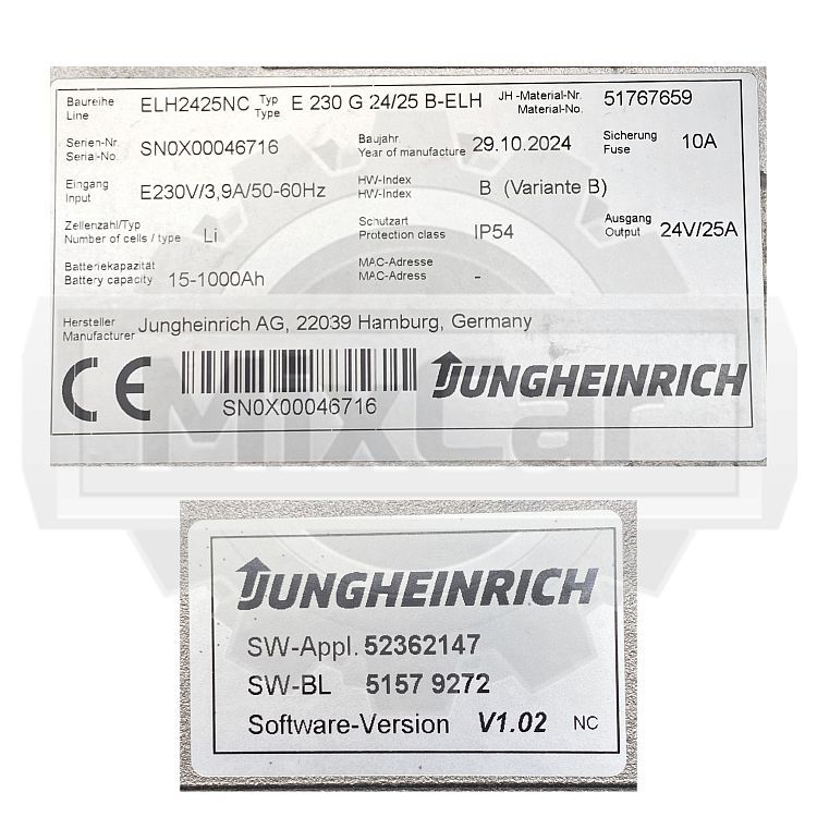 Зарядное устройство JUNGHEINRICH (24V/25A/230V) (51767659)