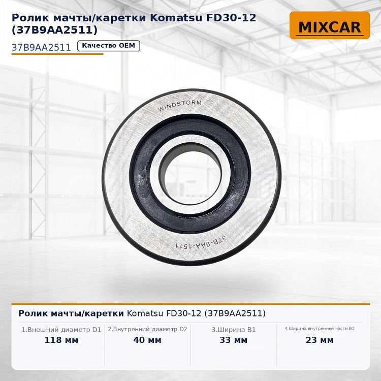 Характеристики: 1.Внешний диаметр D1 (мм) 118;; 2.Внутренний диаметр D2 (мм) 40;; 3.Ширина В1 (мм) 33;; 4.Ширина внутренней части В2 (мм) 23.