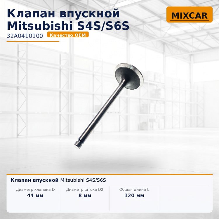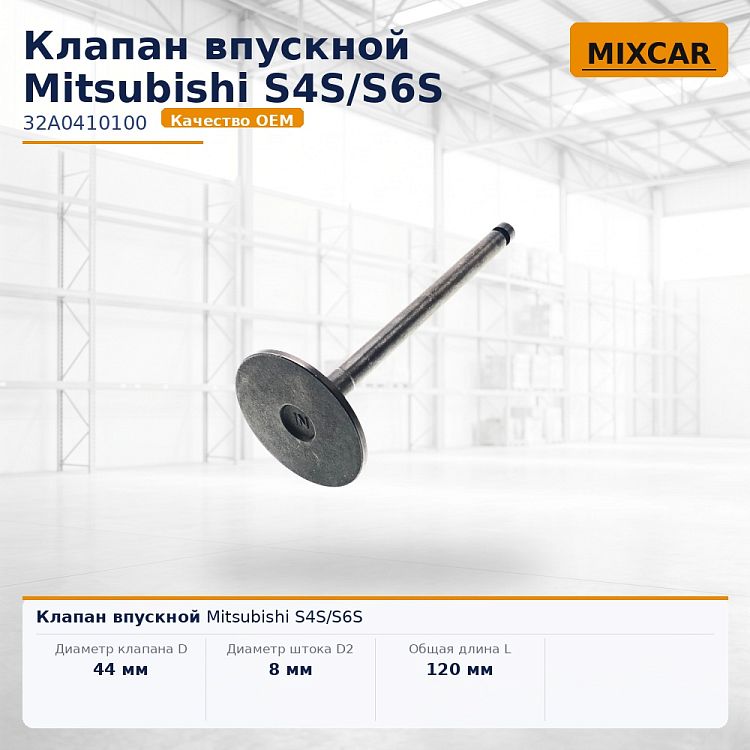 Характеристики: Диаметр клапана D (мм) 44;; Диаметр штока D2 (мм) 8;; Общая длина L (мм) 120.