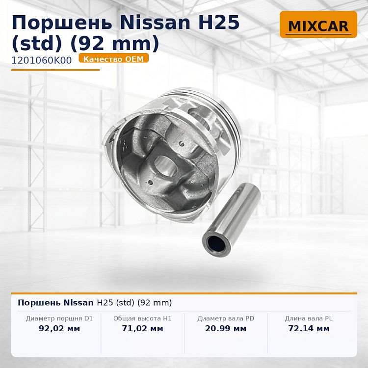 Характеристики: Диаметр поршня D1 (мм) 92,02;; Общая высота H1 (мм) 71,02;; Диаметр вала PD (мм) 20.99;; Длина вала PL (мм) 72.14;; Высота сжатия CH (мм) 35;; Высота H2 -7,5;; Ширина S1 (мм) 2;; Ширина S2 (мм) 2,5;; Ширина S3 (мм) 4.