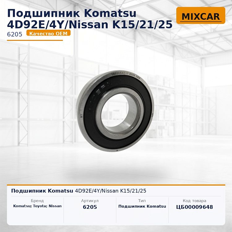 Применяется на спецтехнике марок Komatsu, Toyota, Nissan; моделей 4D92E, 4Y, K15, K21, K25.